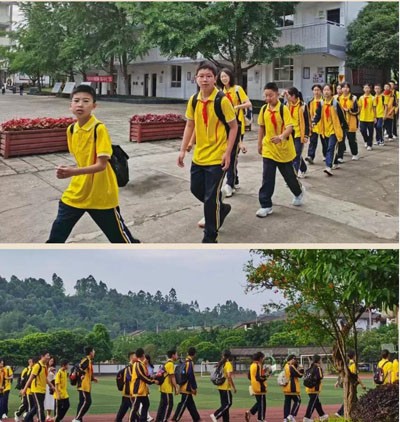 清晨的阳光洒满校园,同学们以班级为单位集结完毕,带着对未知的好奇与期待参加简短而庄重的出征仪式。