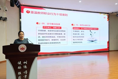 学校副校长任冠强、党总支专职副书记赵焱分别从各自分管领域,向全体教职工分享了新学期工作思路,对开学工作提出明确要求。会议重申了学校安全工作的重要性和安全培训的必要性,提出了“思想重视,源头杜绝,注重细节”12字安全工作方针;会议还对新学期德育常规和学生心理健康等工作提出新要求;并明确“以党建为旗帜、以教学为根基、以师德师风为保障、以合理为引擎”为核心思想,向老师们做了党建、教学和师德师风等工作部署。会中,赵焱副书记还带领全体教职工重温了《教师职业行为十项准则》,并通报了近期廉洁自律警示教育案列。