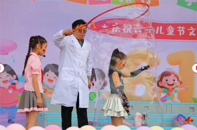 科技节的压轴大戏——泡泡科学秀,将欢乐推向高潮!孩子们惊叹于泡泡乒乓球来回碰撞而不破的奥秘,沉醉于层层叠叠的泡泡宇宙之美,更被烟雾泡泡营造的科幻场景深深吸引。最后,一个近3米的巨型泡泡缓缓吹出,承载着孩子们对科学的无限好奇与想象,为科技节画上梦幻的句号。