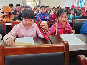 赠人玫瑰,手有余香。会议为表达对孩子们的祝福,特意为每位孩子准备了一份特殊的礼品——吉祥物“红绒马”,温暖的红围巾,寓意健康长寿的细面,甜蜜的玄滩特产——泡糖。