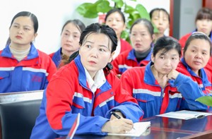 2023年11月10日,四川省广安市华蓥山经开区大千电子科技有限公司的务工人员在参加工伤预防技能提升培训。