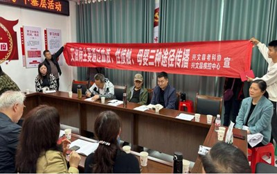 4月8日,兴文县老科协联合卫生健康局走进九丝城镇卫生院扎实开展预防"艾滋病"防治工作科普宣传活动。