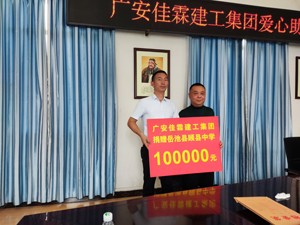 陈松柏书记在讲话中,对这次捐赠活动表示感谢后,他讲到,广安佳霖建工集团作为一家本土民营建筑企业,业务遍布海内外,公司年产值达20亿元,为国家创税2亿多元。公司在自身发展的同时,先后到岳池的九龙街道、花园镇、齐福镇、同兴镇、龙孔镇、县残联等单位开展爱心捐赠活动,在石垭镇成立了广安市首个乡镇贫困助学基金。2011年以来,公司累计捐款捐物200余万元用于爱心助学、孝亲敬老、预防防控、防汛救灾等事业,为我县经济社会发展做出了积极贡献。邹佳霖董事长更是被评选为广安市助人为乐好人(2023年一季度),为全社会树立了良好标杆。