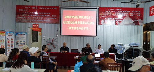4 月 22 日,成都市双流区黄水镇老年人体育协会精心组织了第四届老年人社区运动会健身健康知识讲座活动。13 个社区(村)的老体协及团队负责人,共计 60 余人积极参与了此次讲座。