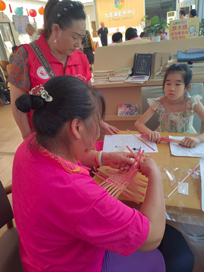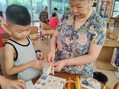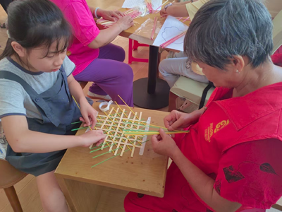 接下来的竹编技艺传授环节,长辈们耐心地给孙辈指导着每一个步骤,老年人们凭借丰富的经验,手法娴熟,而孙辈则充满好奇,学得认真。在编织的过程中,祖孙间不时交流心得,老年人传授技巧,孙辈则提出新颖的想法,这样的互动不仅让竹编技艺得以传承,更让两代人之间的情感得到了加深。整个活动现场洋溢着温馨和谐的氛围,大家都沉浸在技艺的传承与创新的乐趣之中。