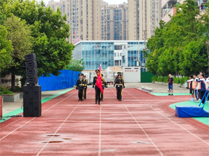 一抹中国红,一腔爱国情。伴随着雄壮的国歌声,五星红旗冉冉升起。全体师生肃立,学生行少先队队礼,表彰大会就此拉开帷幕。