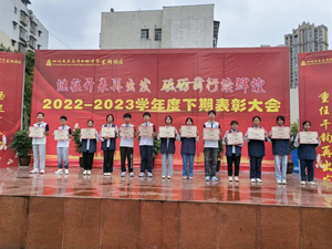 接着表彰的是2022--2023学年度下期区、校表彰的优秀教师。他们分别是:高坪区优秀班主任林翠;高坪区师德师风先进个人周懿;白塔中学优秀教师刘生远、杜剑堃、罗文利、宋晓、谭敏、王华明;白塔中学优秀班主任茹虹铭、赵勤、任明伟;白塔中学优秀教研组长胡艳;白塔中学优秀教育工作者吴海军;白塔中学教育科研先进个人王伟。