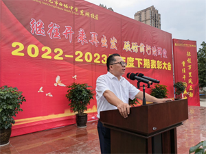 最后,白塔中学东湖校区党支部书记、年级主任徐林致辞。首先,徐主任肯定了全体师生上学年的成绩,带来了我校荣获“高坪区基础教育初中组三等奖”的好消息。站在新学期的起跑线上,徐主任希望同学们胸有格局、心存敬畏、脚有力量。愿所有老师厚德守正,不忘初心,砥砺前行。祝所有学子五育并举,身心两健,逐梦向上!