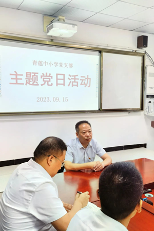 学校党支部特别邀请了青莲街道办事处党工委书记高武同志参加了此次活动。高书记从青莲街道办今年经济发展的总目标、对青莲教育发展方向的谋划和布局、对学校教育的要求和期待等方面,与在座的党员教师进行交流。希望党员发挥先锋模范作用,践行为人民服务的宗旨,助力青莲快速发展。