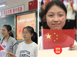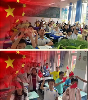 主题班会上,班主任们带领同学们历览祖国山河。从百废待兴到繁荣富强,从方志敏、张自忠、钱学森对“何谓爱国”的回答到青少年如何勇担使命。同学们直抒胸臆,为国骄傲,并纷纷表示他们会理性爱国,奋斗自强。
