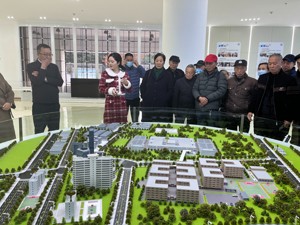 上午九时许,我们到达社区时,受到了在此等候的社区党委书记夏小金和工作人员林健等的热情欢迎和接待,夏书记亲自安排有关人员给我们老同志们作了详细的情况介绍和看规划模型,并陪同带领大家参观了整个园区。