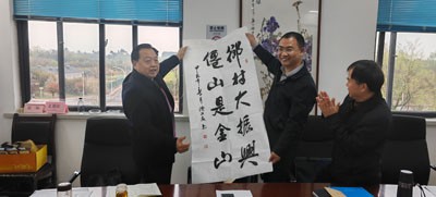 彭州市委原副书记、市老科协党支部书记冯跃国,市政协原副主席、市老科协荣誉会长陈德友为葛仙山党委政府赠送了书法题字,陆小强愉快地接受了市老领导亲手书写的墨宝。