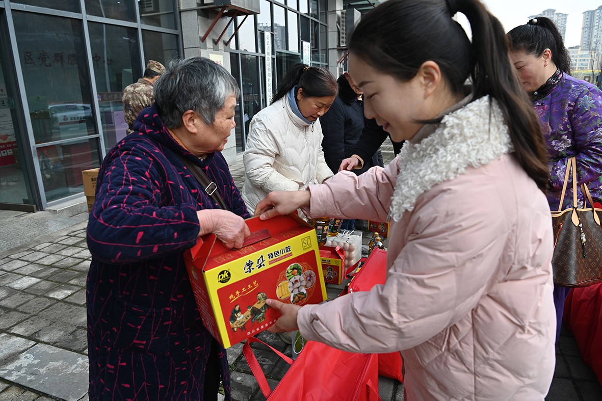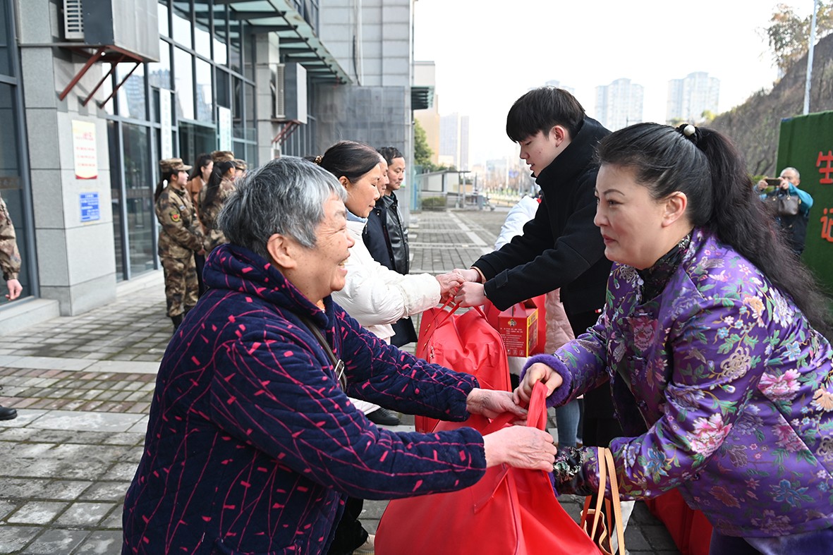 暖心慰问品传递军民情深。清晨,慰问组从成都及县内各镇赶赴青阳街道办事处,将棉被、鸡蛋、大米、菜油、迎春叶儿耙、春联、灯笼等“七件套”慰问物资整齐摆放。“昨天,您们穿戎装保家卫国,把青春奉献给了军营;离开军营,您们脱下戎装,依然为荣县的建设贡献力量。您们是老班长,是学习的榜样!春节将至,荣县退役军人志愿服务队携手爱心企业,向您们致以最诚挚的祝福!”慰问组送上祝福。