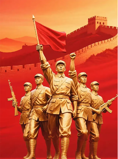 龙吟虎啸礼炮吼,钢铁长城旗帜红。