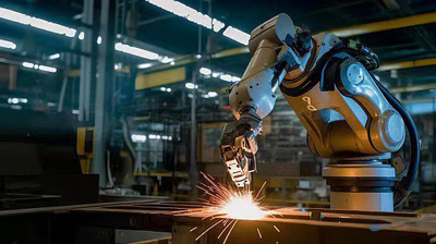 长长的铁臂在“自动”焊接巨型发电机部件。