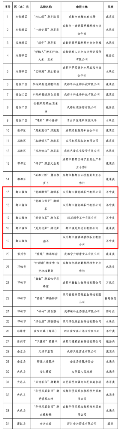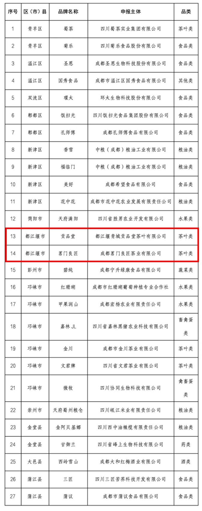近期,成都市农业农村局公布了2024年成都市农业品牌目录,共包含87个品牌。?这些品牌涵盖了成都市各个区域的优质农产品和企业品牌,经过严格的评选和审核,最终入选该目录?。值得关注的是,都江堰市共有12个品牌入选,涵盖茶叶、蔬菜和水果三大类农产品,其中茶叶类就有市老科协团体会员单位贡品堂茶业、青城茶叶、洞青茶叶、灌城联和茶业及茗门良匠茶业有限公司等所属9个品牌入选,展示了都江堰市包括茶业品牌在内的农业品牌建设取得丰硕成果。