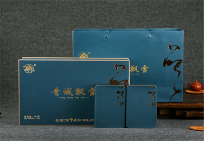 “青城飘雪”牌绿茶:青城飘雪精选自青城山明前优质早春碧绿嫩芽,拌合夏伏窨花,得绿茶清、融茉莉魂,经十多道工序精制而成。外形匀齐、翠绿显毫、汤色碧幽、乳花沉浮、香气四溢,饮下入喉,唇齿留香,回味绵长,为好茶之人带来视觉与味觉的双重享受,故而得名“青城飘雪”。