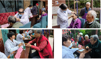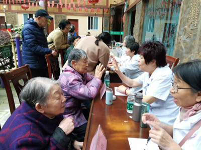 科普讲座结束后,紧接着为老人们进行了义诊。活动室外整齐地摆满了义诊桌,眼科专家于莎、耳鼻咽喉科专家程奇、中医专家刘维宾、丁光玲,肾内科专家刘牧、呼吸内科专家胡世玲、保健专家曾玲、呼吸内科专家李元洁、睡眠障碍专家尹洪芳、疼痛科专家周力平、神经内科专家袁亚玲、妇科专家李卫等一批具有正高、副高职称的医疗卫生专家为60多名老人和10多名员工进行了近两个小时的免费义诊,有的还开具了处方和进行了现场诊疗。同时,还为50多位老人和服务中心部分员工量血压、测血糖。