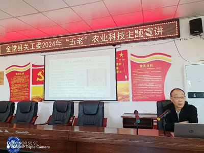 老科协秘书长高级工程师彭世选围绕《展望农业发展前景,实现中国式农业现代化》为题进行了宣讲。他首先阐述了我国农业正在向规模化农业、新型农业主体发展趋势,接着阐述了先进的智慧农业在现代化农业中发挥的巨大作用,从智能化的灌溉系统到精准的无人机农药喷洒;从先进的农业机械精准播种、施肥为一体,到无人插秧机和高效快捷的联合收割机;从温控一体的智能化大棚,到新型的农产品加工。在讲解中用金堂本地实际使用的事例,深入浅出地剖析中国式现代农业广阔发展前景,让参加培训的农户切实感到科技给农业带来的巨大变革。同时,也向村民们展示了以品牌为农业拓展市场广阔的前景,鼓励农户积极对接电商平台,拓展销售渠道。