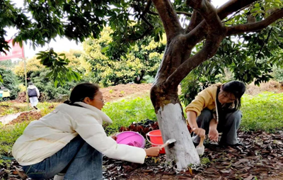 理论学习过后,课堂转移到了荔枝果园里。在指导老师的带领下,同学们展开了抹冬稍、涂树干等荔枝冬季管护实践操作。同学们学习兴趣空前高涨,有的调石灰液、有的涂树干、有的抹荔枝嫩稍,热火朝天的场面吸引了附近十的农民积极参与其中,一位农民很有感触地说:这样的活动方式很好,有利于培养学生学科学、用科学的兴趣,能为培育新一代现代农业接班人和职业农民打下基础。(合江县老科协)
