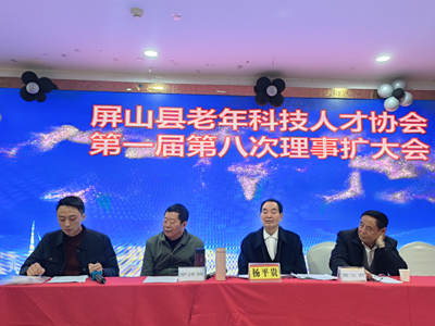 2024年11月19日,屏山县老年科技人才协会在县城文学酒楼会议室召开第一届第八次理事扩大会议。全体理事、部分村干部和中药材种植大户以及企业代表参加会议,经信科技局和科创中心等单位领导到会指导工作;会议由老科协秘书长罗泽辉同志主持。