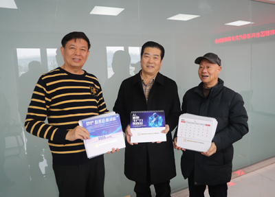 结束参观后,成都市老科协副秘书长李维嘉首先代表成都市老科协向企业赠送老科协主编的以“新质生产力——探索创新未来”为主题的知识台历。