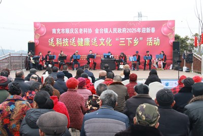2025年1月18日,由南充市顺庆区老科协、金台镇人民政府主办,区老科协农村分会承办,区卫健、商务、工业、机关街道等分会,南充市众爱艺术团、蔚蓝艺术团,农村分会金台专业组等协办的送科技、送健康、送文化“三下乡”活动在金台镇万佛桥村幸福怡家农场热烈举行。中共顺庆区委常委、区总工会主席杜彬出席活动并讲话。金台镇党委副书记、镇长魏迪出席活动并致辞。顺庆区委老干部局副局长郑紹菊,区科协主席梁茵,金台镇党委副书记郑靓莅会指导。区老科协各联系服务营地业主、万佛桥村以及周边村的村民近1000人参加了活动。区老科协会长陈简政主持活动。