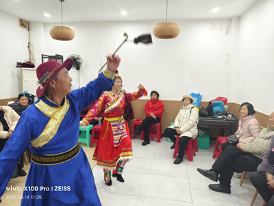 在文艺演出活动中,文宣专委会副主任刘德林等表演的《相亲相爱一家人》,表达了中华一家亲的深厚情怀;陈艳林演绎的《山丹丹花开红艳艳》深切缅怀了为革命胜利而牺牲的英烈;周光莲的《英雄赞歌》既是对先烈的敬仰,更展现出对未来奋进的豪情;李卫平等表演的扇子舞《伟大领袖毛泽东》唤起了对中国脊梁的怀念与自豪;张永强、陈艳林的对唱《绿色军衣》抒发出人民对军队的热爱、强国爱家的情怀;小合唱《逛新城》表达了人民大众对祖国日新月异变化的喜悦;何平等人小合唱《愿亲人早日养好伤》深情表达了军民一家亲、爱国抗敌的浓厚情感。袁友谊的独唱《牧歌一曲献给党》展现了草原儿女爱国爱家、忠于党的情怀。刘德林等表演的扇子舞《美丽中国》表达了对祖国的热爱和对祖国变化的赞美。王佑明、罗友清等男声小合唱《弹起我心爱的土琵琶》豪迈激越,对革命充满必胜信心。无论是歌曲还是舞蹈的表现,都赢得阵阵掌声和欢呼声。