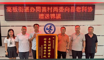 2025年8月10日,老科协联系村——高板同善村党总支书记杨永贵带领村“两委”成员专程到县老科协,赠送了“旱灾时刻伸援手 抢装提灌保丰收”的锦旗。村总支书记杨永贵赠送锦旗后,握着县老科协会长陈光华的手,感慨地说:“这次我们村遭受特大干旱,是你们老科协伸出援助之手,在关键时刻解决了我们的问题,我代表“村两委”感谢你们,代表全村老百姓感谢你们!”