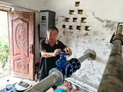 经过连续五个小时的艰苦奋战,中午12点,电力提灌站管道连接终于安装完成并顺利投入运行。清澈的水流顺着管道源源不断地抽向山坡上的大蓄水池,通过畜水池底部的管道再放入低处,灌溉稻田和旱地作物。