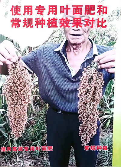 高粱 分两次施用高粱专用叶面肥,靶向促进高粱根系组织和幼穗组织生理活性,高粱亩产提高50%以上,生育期提早10-15天,高粱籽粒更大,颜色更红,卖相好,常规高粱在川南的气候条件下,一中两收成为现实,原来亩产高粱200-300公斤。现在达350-450公斤(正季)+200-250公斤(再生季)。