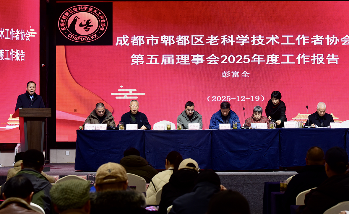 大会在庄严的《中华人民共和国国歌》声中拉开帷幕。会上,彭富全会长所作的《郫都区老科协2025年工作报告》,全面回顾了过去一年协会在服务区域发展、助力民生改善、传承科技精神等方面的丰硕成果。报告指出,老科协始终以“凝聚银发智慧、服务郫都发展”为核心,依托各工委、专委专业优势,在三农服务、文教科普、卫健惠民等领域开展系列活动,累计组织科技下乡、健康义诊等志愿服务30余场,惠及群众千余人次。其中,老党员工作室充分发挥党建引领作用,组织老党员骨干深入先锋村、安龙村等联系点,开展技术帮扶、政策宣讲等活动,成为协会服务基层的“红色堡垒”,擦亮了老党员工作室特色品牌。