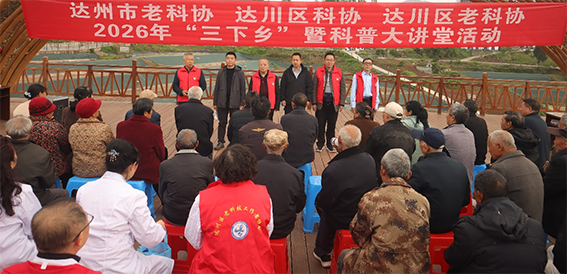 2026年3月27日,达州市老科协联合达川区老科协组织市、区农技专家、医卫专家,走进达川区明月江街道太坪村开展“三下乡”暨科普大讲堂活动。达川区科协主席高海占、明月江街道办党工委书记程帅出席活动启动仪式并讲话,太坪村村组干部、种植养殖业主、村民群众共100余人参加此项活动。达川区老科协会长温南其、副会长兼秘书长吴传明、副会长唐启胜亲临活动现场指导。