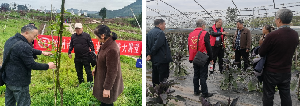 市老科协理事、副秘书长兼会员联络部部长、蔬菜专业高级农艺师何渠华结合太平村蔬菜基地生产实际,从达州春夏蔬菜生产概况与气候特点、蔬菜品种选择与播期安排、育苗关键技术、主要蔬菜栽培技术、土壤改良与肥水管理、主要病虫害绿色防控等六个方面,详细讲解达州市春夏主要蔬菜高产优质栽培技术。集中讲解后,还深入蔬菜种植基地实地查看茄子、辣椒、空心菜等的生长情况,指出了排水不良土壤湿度过高、茄子未及时打枝、辣椒过早移栽受冻害长势差、空心菜缺肥等问题,针对蔬菜生产中的问题,提出了具体解决方案。