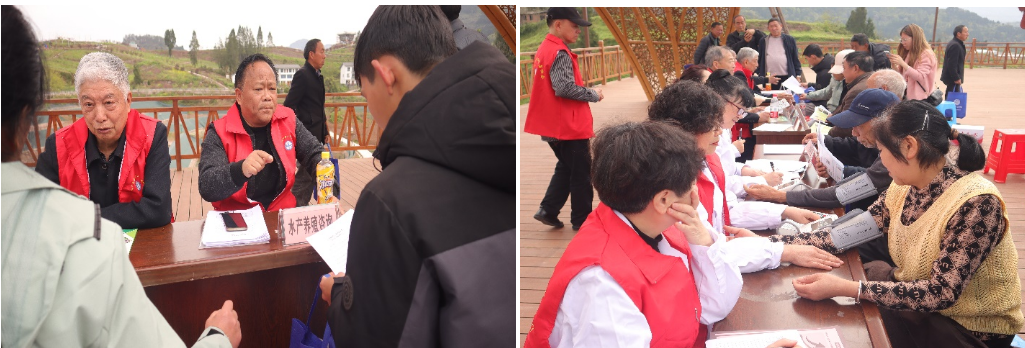在健康康养咨询台前,医疗保健专家现场免费为当地群众看病治病、测量血压、健康咨询,解决群众看病问题,针对高血压、糖尿病等患者,提出科学治疗方案。并现场发放卫生保健和传染病预防知识等科普宣传资料200余份(册)