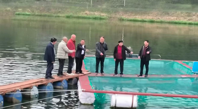 上午10点,在涵水“江口青鳙现代渔业养殖园区”,恰逢园区养殖工作人员正繁忙向养殖区域网箱投放青鳙鱼苗,专家组与园区业主、养殖技术及工作人员交谈,详细了解园区养殖现状、生产运营及发展中遇到的难题。当了解到5х5х4.5㎡网箱1万尾的投放密度时,市老科协水产专家李和平、县老科协水产专家唐绪全深入分析放养密度与短期效益的质效关系,建议开展投放鱼苗密度试验,每一箱投放3000尾、5000尾、8000尾与10000尾不同密度对比试验,进行年度成本效益精准核算,探索兼顾长短效益的养殖密度和养殖模式,加速养殖资金周转,实现降本增效提质增收目的。