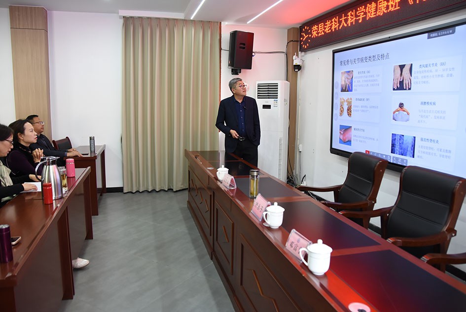4月2日,荣县老科学技术工作者协会(以下简称“老科协”)特邀县政协副主席、县中医医院原院长、主任医师钟永平,在荣县老年科技大学(以下简称“老科大”)教室,为50余名退休干部、老科技工作者及市民带来《骨关节、肌肉保健》专题科普讲座。这是荣县老科协联合老科大今年推出的第三场“银龄微讲堂”,实用的健康知识精准送到了老龄“大学生”的心坎里。
