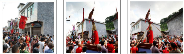 2022年7月31日,我在兴文县建武镇有机会拍到这样的场面,只是带的是广角镜,没能把抬高桩戏的细部特色记录下来。