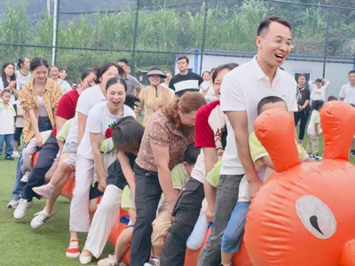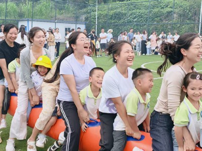 劳动过后,是充满活力的亲子游戏环节。在“亲子毛毛虫接力赛”中,家长与孩子组成一支支“毛毛虫”战队,步伐一致,口号响亮,向着共同的目标奋力前进。赛场上的加油声、欢笑声此起彼伏,展现了亲子间高度的默契与团队协作精神。