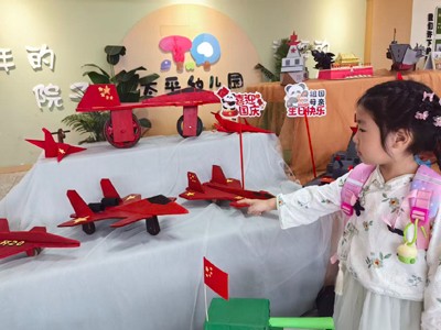 为进一步加深幼儿对 “大国重器” 的认识,增强亲子互动,幼儿园还举办了 “大国重器” 亲子手工展。活动前期,幼儿园向家长们发出倡议,鼓励家长与孩子共同查阅资料,利用身边的废旧材料,如纸箱、塑料瓶、瓶盖、彩纸等,制作出代表中国科技实力的 “大国重器” 模型。在亲子共同努力下,一件件精美的 “大国重器” 模型应运而生,歼 - 20 战斗机威风凛凛、福建舰航母气势磅礴、东风 5C 导弹模型造型逼真,尽显大国威慑力。