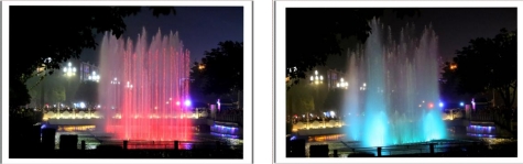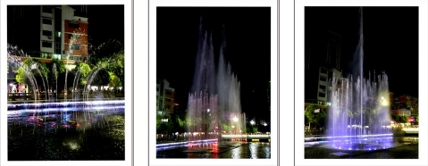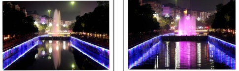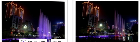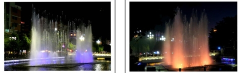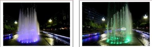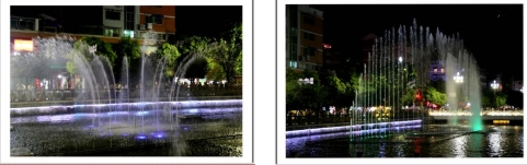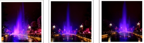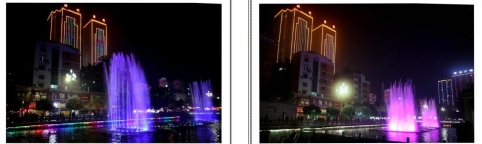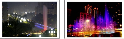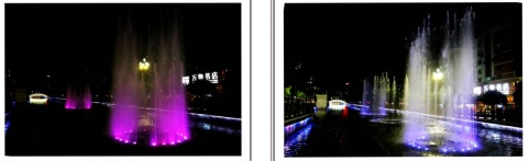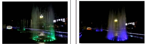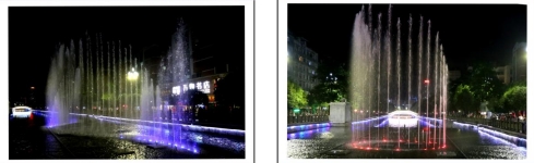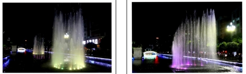 一根根彩色水柱伴随着优美的音乐和变化的灯光直冲云霄(底部构图有区别)