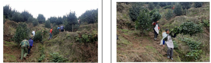 2010年11月30日花海建设者们在山坡上肩扛茶花树场面