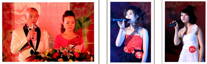 图(1)→主持人罗君(左)、邓莉(右); 图(2)(3)→19号、20号佳丽参赛场面佐证有20名参赛佳丽。