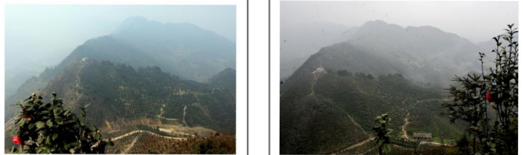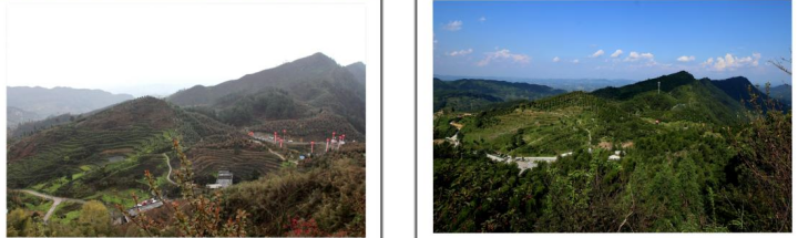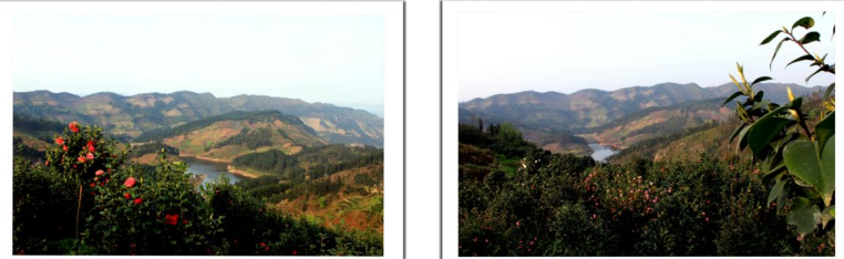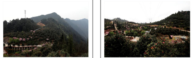 在最高处观景台向南方向看到漫山遍野的茶花林