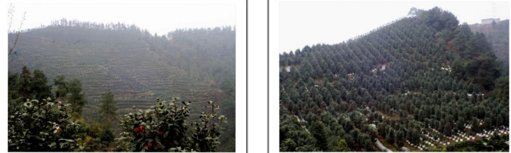 在最高处观景台向北方向看到漫山遍野的茶花林