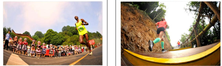 这两张运动员在景区的图片是北京来的体育总局的摄影记者与为交换的,开赛前我扛着棚梯途经天悦酒家(邮政宾馆)门口准备到中心桥头居高临下拍摄,他主动与我商量拍摄图片共享,我为他提供了起跑盛况图片,他为我提供了这两张途中赛跑场面。