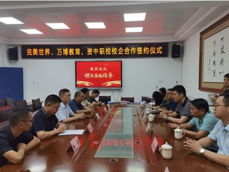 2023年7月27日,资中县职业技术学校、完美世界教育科技(北京)有限公司和四川万博智汇云教育科技有限公司进行了校企合作三方签约仪式。资中县教育研究室刘华主任、职教中心邓辉主任,学校校长邓盛斌,完美世界教育副总裁杨凯、区域经理孙家龙,四川万博教育软件股份有限公司总经理万福等校企领导出席了签约仪式,仪式由资中县职业技术学校实训处主任罗显金主持。