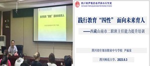 为了提升民族边区职业教育班主任队伍的管理水平,2023年8月1日-10日,西藏自治区山南市二职校在四川师范大学开展了班主任管理队伍培训。作为承担四川省第三批揭榜挂帅任务的四川省傅洪成名师工作室,积极发挥名优教师的引领示范作用,工作室4名教师利用暑假时间为西藏民族边区职业教育班主任队伍提升倾力付出,工作室导师尹福泉和工作室成员李勇生、明安丽、王伦万等4名教师承担了7个专题讲座培训任务。