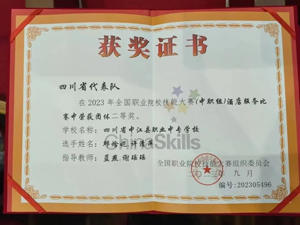 9月1日至3日,2023年全国职业院校技能大赛(中职组)酒店服务赛项比赛在广州举行。来自30个省(区、市)和新疆生产建设兵团79所职业学校的150余名选手参与技能大赛。中江职中邱焓妮、许清萍荣获该赛项团体二等奖。