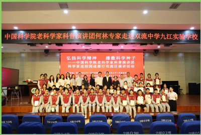 由四川省关心下一代工作委员会、四川省关心下一代基金会指导,成都市关心下一代委员会、成都市关心下一代基金会主办,双流区关心下一代委员会、双流区教育局关心下一代工作委员会、双流区科学技术协会承办,双流中学九江实验学校协办的 “弘扬科学精神?播撒科学种子” 中国科学院老科学家科普演讲团科学家进校园成都行双流区演讲活动圆满举行。